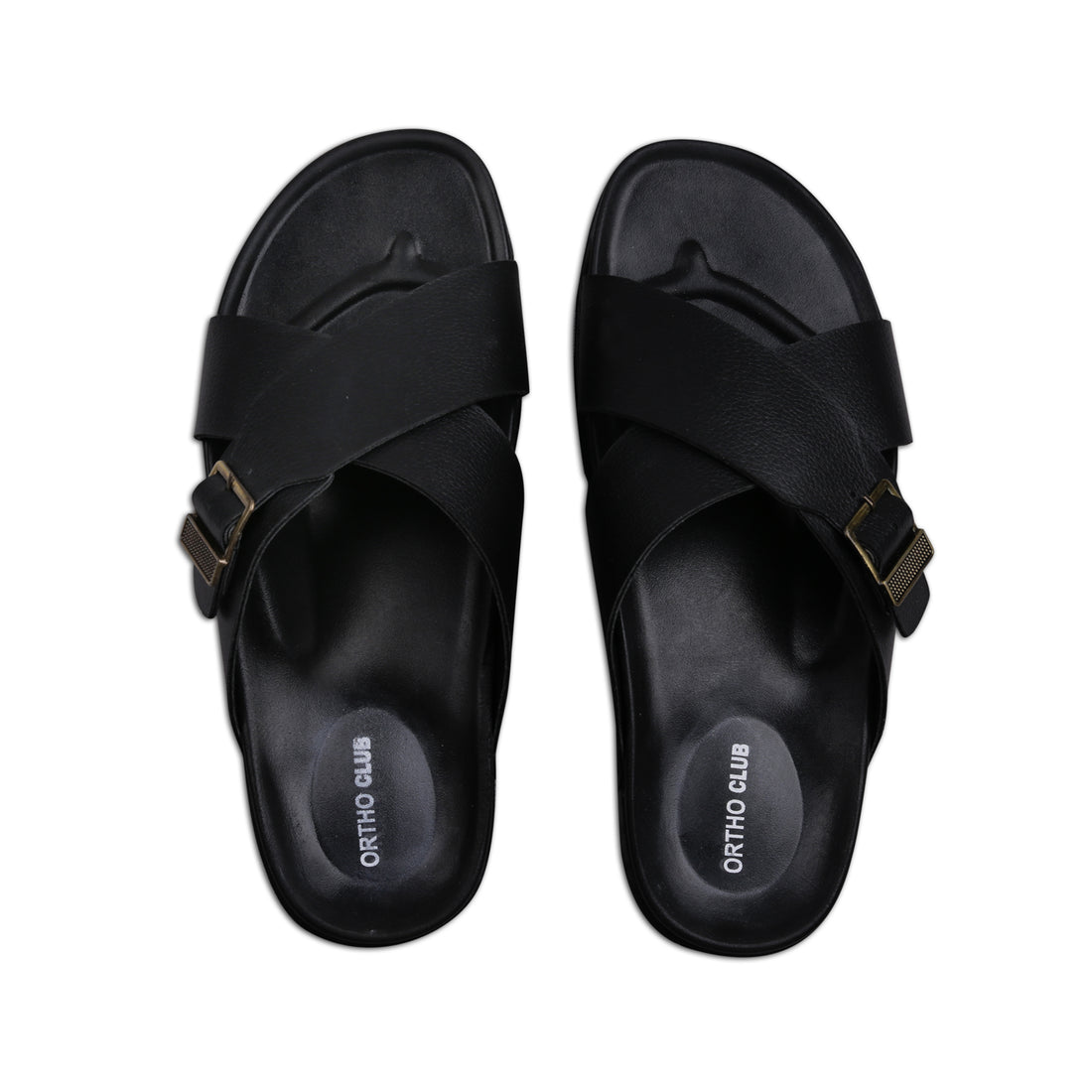 ORTHO CLUB Men's Synthetic Leather Cross-Strap Slip-On Sandals with Adjustable Buckle